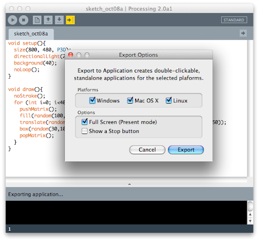 A little bit disapointed, I opened Processing to see how easy it was to ship a sketch as a native application.